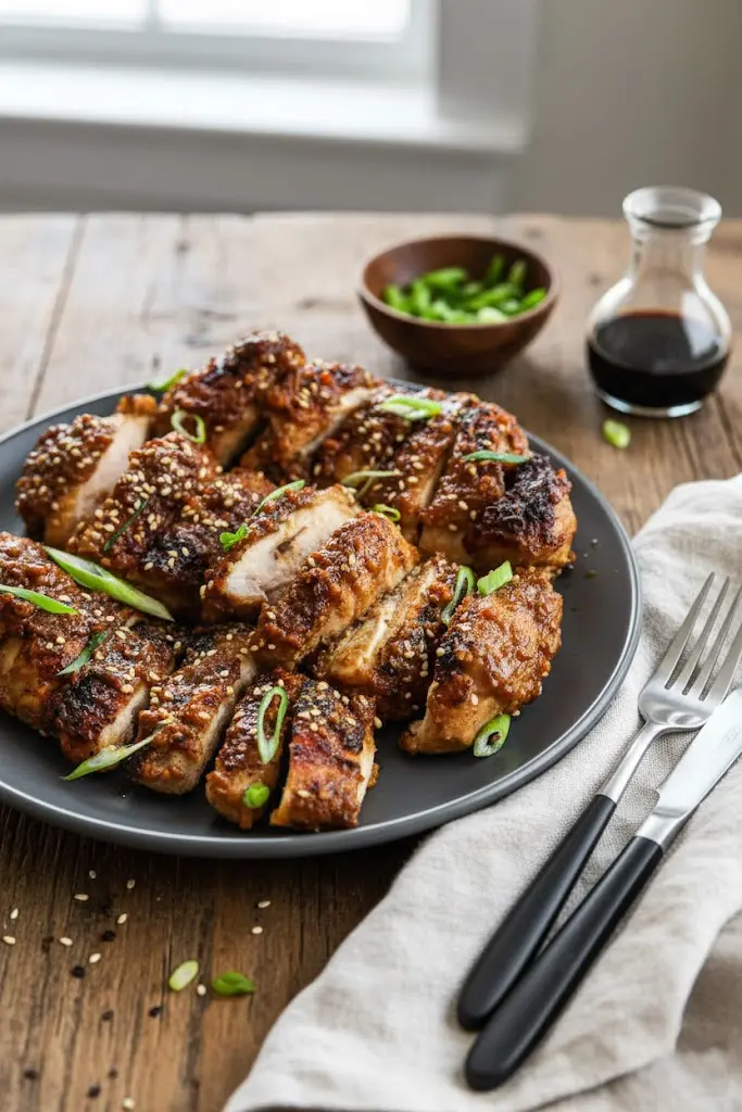 - Cut and assemble: Transfer the chicken pieces to a cutting board and slice them into strips if you prefer, or serve whole. Drizzle the chicken with the luscious miso sauce remaining in the pan. Sprinkle with sesame seeds and scallions for the final aromatic finish.